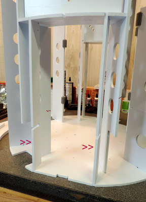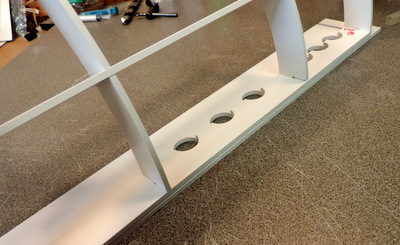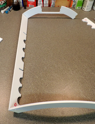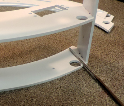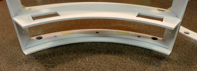Now, I had assembled two rear doors and never noticed the problem. When I went and took a closer look at the rear door with skins on it I noticed that the center ring is bowed just a little. In practice, it's not enough to cause a problem. The CAD drawings have been fixed and all currently shipping frames have ribs with the slots in the correct places. |