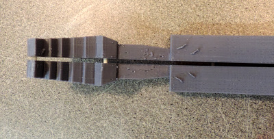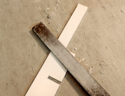 The slot in the slider needs to be a tight fit on the ribs in order to glue it in place. The inside corners of the channel are slightly rounded. Use a file to sharpen the corners of the slot. |