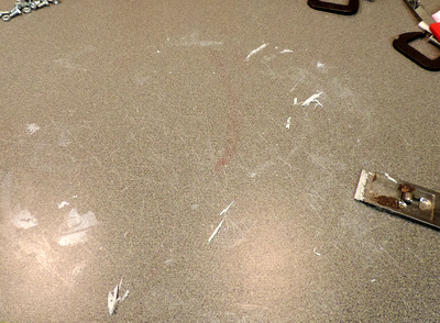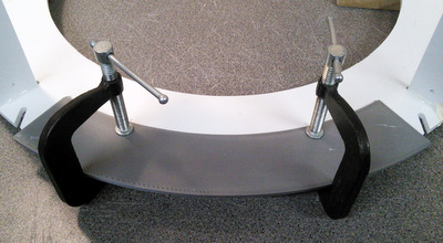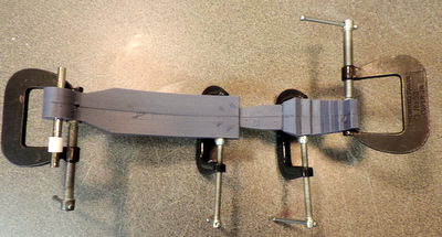 ![]() When I glued the bottom core plate on originally I used tape to create an edge for the core plate to rest against while the glue was setting. This time I used C-Clamps since I didn't think the tape would stand up to the primer and it would be difficult to clean up if the plate slipped while the glue was setting. |