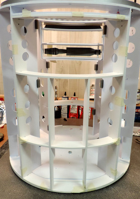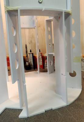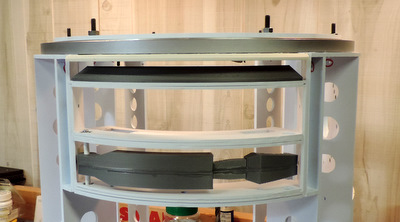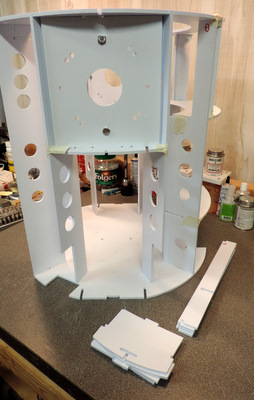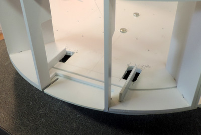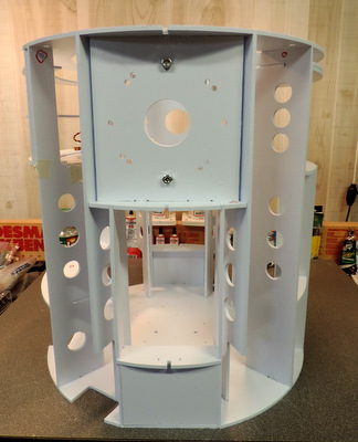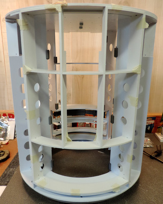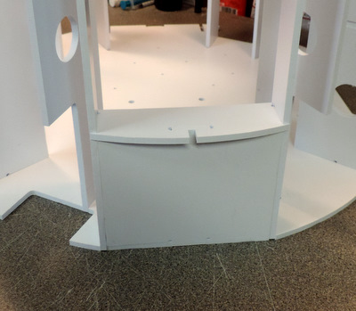 ![]() Ring0 (also serves as the skirt bottom), Utility arm ring (lower). Rib slots end with Ring1 so it's not necessary to fill in the joints. The two small parts are the rear door keys. See rear door frame assembly for more information. [02/10/16] Do not Glue Ring0 in place until after you mount the skins. Having it removable will make the skin mounting easier! |