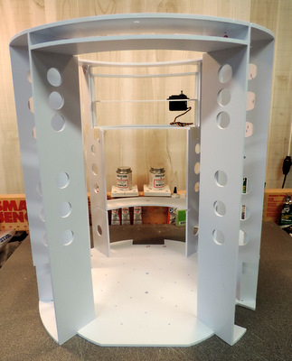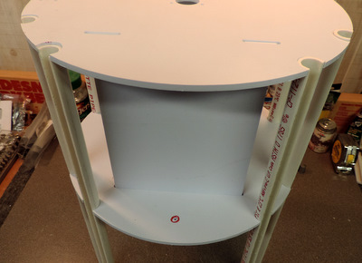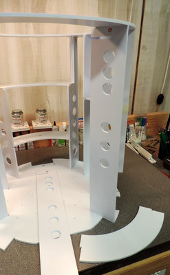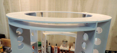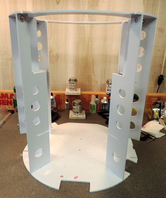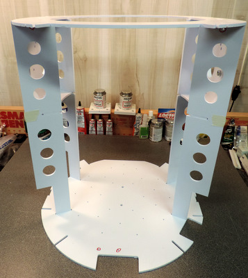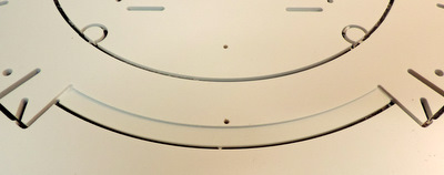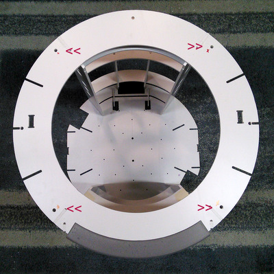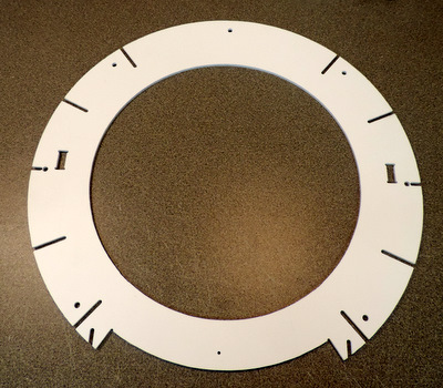 ![]() Ring 0 (this face has the slots for the skirt parts) the two oval cutouts are finger holes used to pop the rear panel open. If you are not going to have a skirt simply turn the ring over and glue this face to ring 1. |