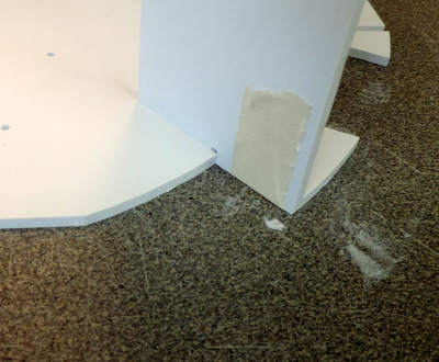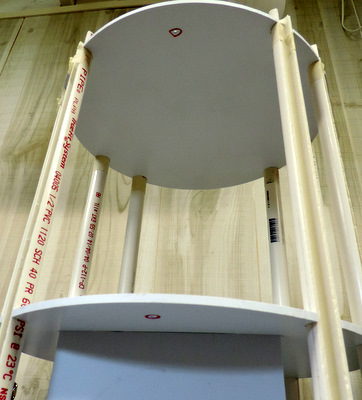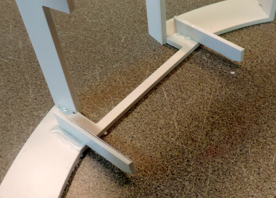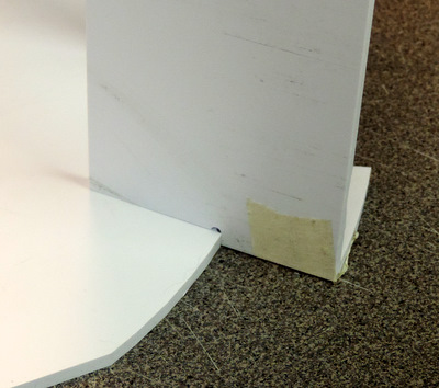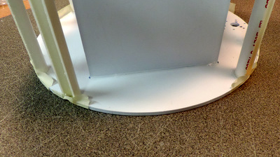 ![]() Left: That's the 30in stool the frame fell from. Above: The major damage was to the center core, where the glue joints to the pvc pipe failed. The frame joints were made using SciGrip #3 which is a solvent cement that fuses the two pieces into one. All of those frame joints, and the one's in the rear door were still intact. |
