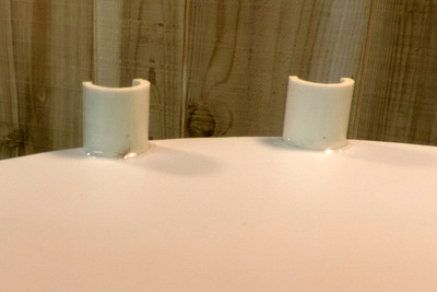 ![]() Left: line up the two marker holes and fit the upper half of the hub in place. Above: A rib has been left out so you can get a better view. The Pipe should just fit the space available. |
