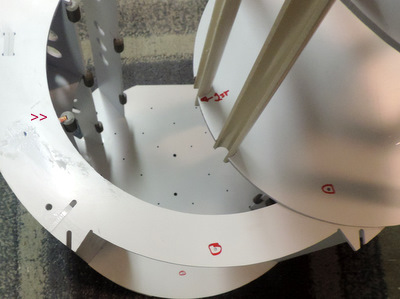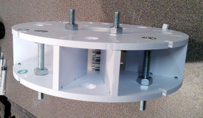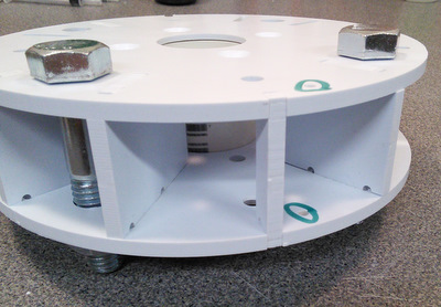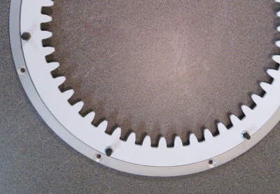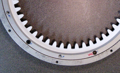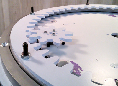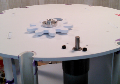 ![]() With the Rockler prepared, bolt the Internal Gear of the Dome Motivator to the inner race. Extended length bolts give something for your Dome to mount to |