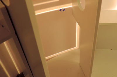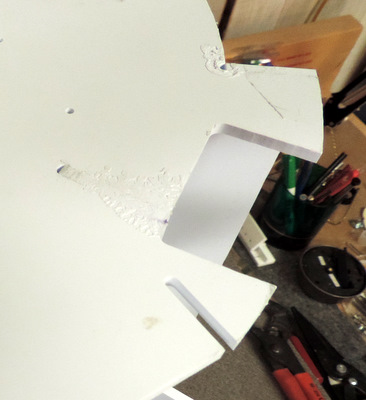 Above: This is the space behind the Pocket Vents. The rib shown was notched for clearance. Just not enough. Right: there are 4 ribs on the Ribs-1 panel, only 2 need to be notched but it was easier to notch all 4 on the panel. |