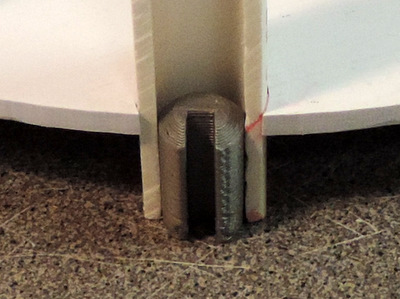 Add some tape to the bottom to hold the rim in place securely. Note: the bottom slot has been made deeper to hold the rib. |