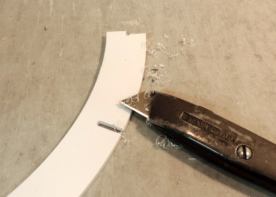 (Shown Above Right) Left: Again, use your favorite cutting tool to extend the notch upwards as shown. |