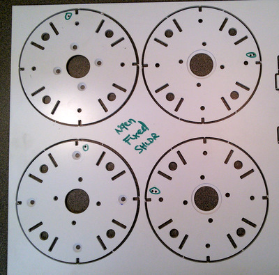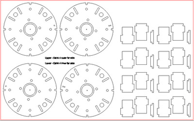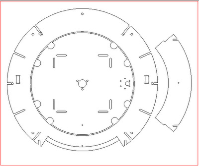 Revisions![]() Ring4, Core4, Utility Arm Ring (upper). Ring4 now has mounting holes for the Rockler bearing while the Core4 plate has holes for a dome motor and slip ring mount. |