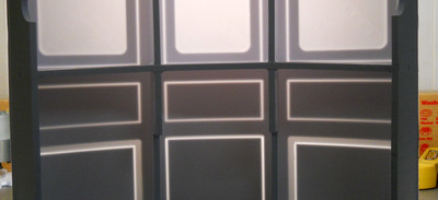 Turn the frame around so you are working on the back and install the rear door ribs. the magnets should be facing you. [ sorry, there are no magnets in this pix] |