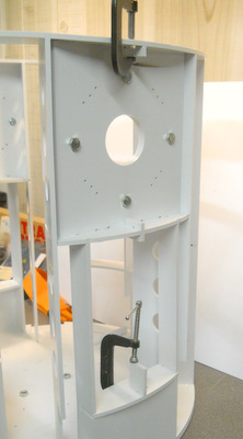 ![]() Above: check the fit using 1/2 in bolts. Right: Filler rib provides glue point for skins. |
