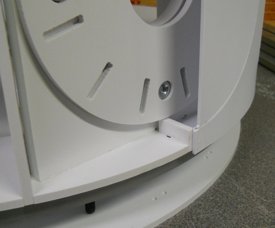 here's a better view of the notch in ring4 shown above. this feature should be facing down (into the body of the droid) NOTE!! - you should hold off on installing your LDP until after you have mounted your skins to the frame. Otherwise the skin mount gets more complicated. |